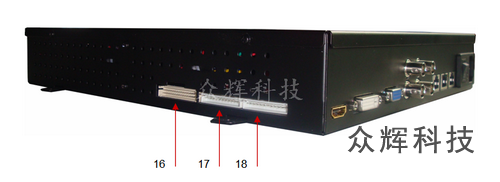 17、18 | 背光DC 24V電源接口,帶背光開關(guān)和亮度控制,采用防呆設(shè)計(jì)。 |